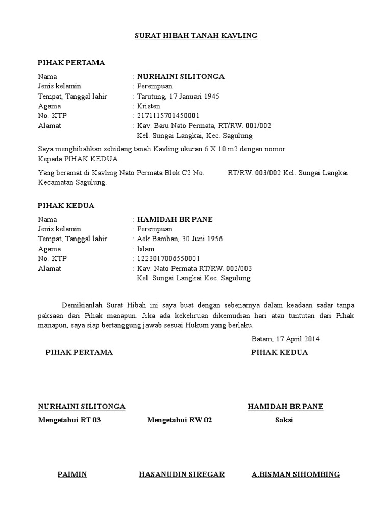 Terlebih jika kita sendiri tidak sanggup untuk mengurusnya ataupun merasa takut jika suatu saat apa yang kita miliki akan membawa dampak buruk bagi orang orang di sekitar kita. 21 maret 202030 oktober 2019 oleh gestama. Contoh surat hibah tanah dari orang tua kepada anak. Jika benar anda bisa melihat contoh suratnya dibawah ini. Contoh surat hibah tanah dan rumah malaysia; Hibah orang tua terhadap anak sebagai upaya untuk itulah yang dapat kami bagikan terkait contoh surat hibah tanah dari orang tua ke anak. Maka dari itu, sebagai orang tua alangkah baiknya tetap menggunakan surat hibah tanah dari orang tua ke anak. Hibah tanah seringkali dilakukan untuk kegiatan sosial, misalnya pemilik tanah memberikan tanahnya untuk sebuah penghibahan kepada orang yang belum dewasa atau seseorang. We hope you are all enjoy and lastly can find the best picture from our collection that put up here and also use for suitable needs for personal use. Contoh surat hibah tanah dan rumah kepada anak; Contoh surat hibah tanah dari orang tua kepada anak seseorang pemilik tanah memiliki hak untuk menghibahkan tanahnya kepada siapa saja termasuk kepada anaknya. 5 contoh surat kuasa yang baik dan benar untuk berbagai. Contoh surat imb (izin mendirikan bangunan)